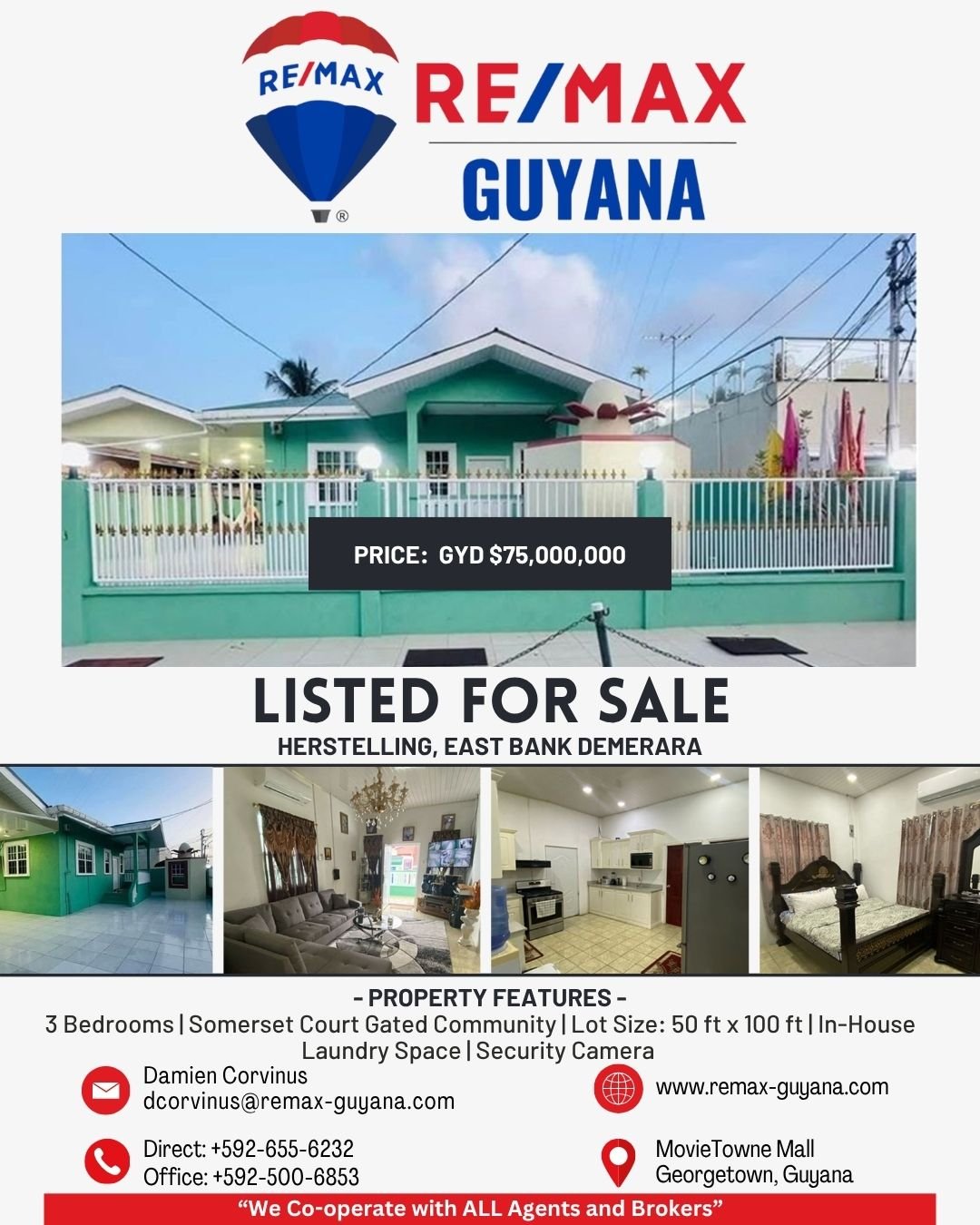 Additional Contact: +592-655-6232, +592-500-6853, dcorvinus@remax-guyana.com
