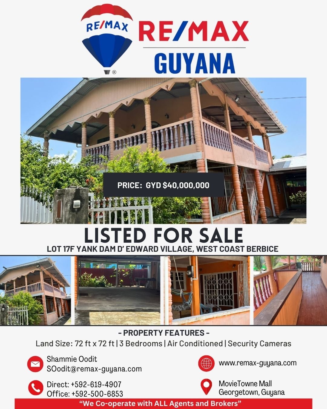 Charming Family Home at Lot 17F Yank Dam, D’ Edward Village, West Coast Berbice. Inviting and well-maintained family residence in a serene neighborhood.