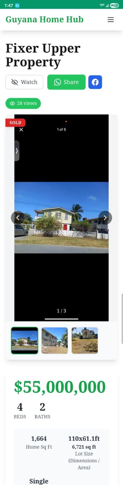 This 4 bedroom, 2 bathroom, house is available for sale. Priced at GYD 55,000,000.