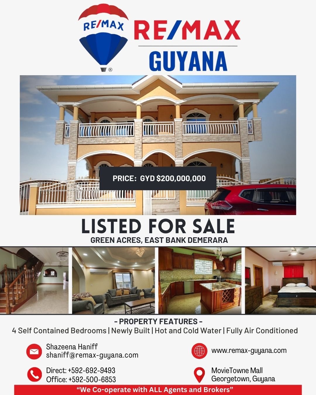 Additional Contact: +592-692-9493, +592-500-6853, shaniff@remax-guyana.com
