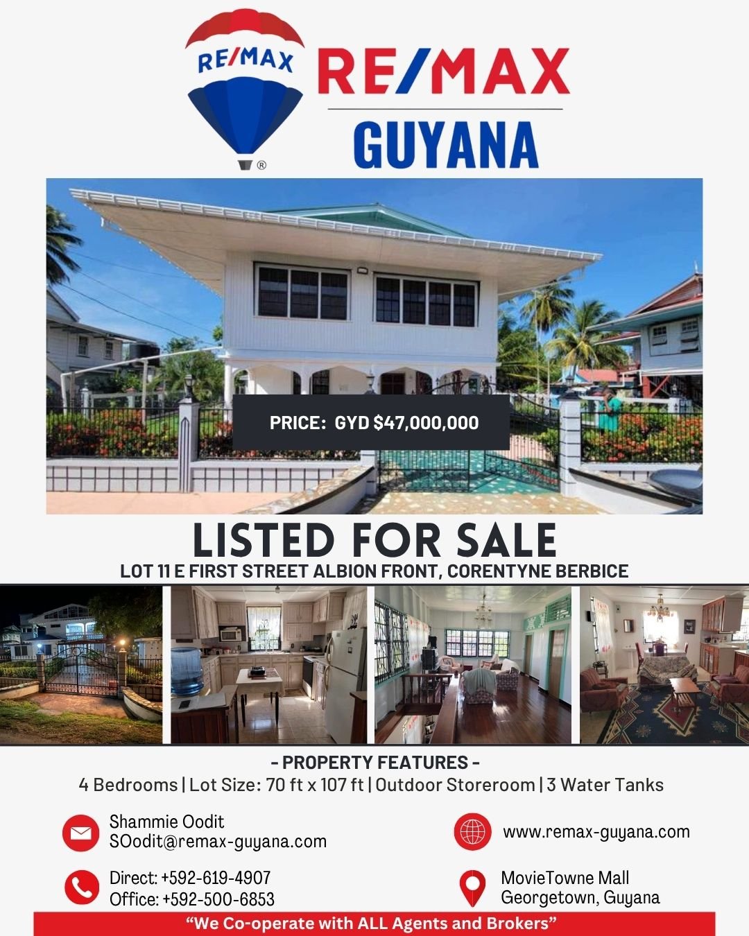 This 4 bedroom, house is available for sale in Lot 11 E First Street Albion Front. Priced at GYD 47,000,000.