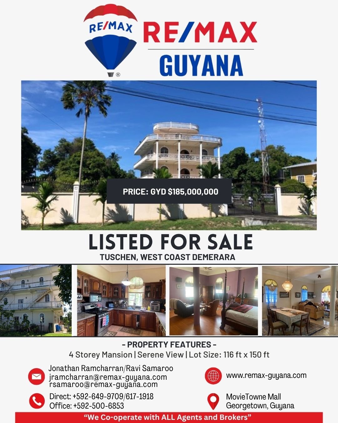 This 4 bedroom, 3 bathroom, house is available for sale in Tuschen. Priced at GYD 185,000,000.