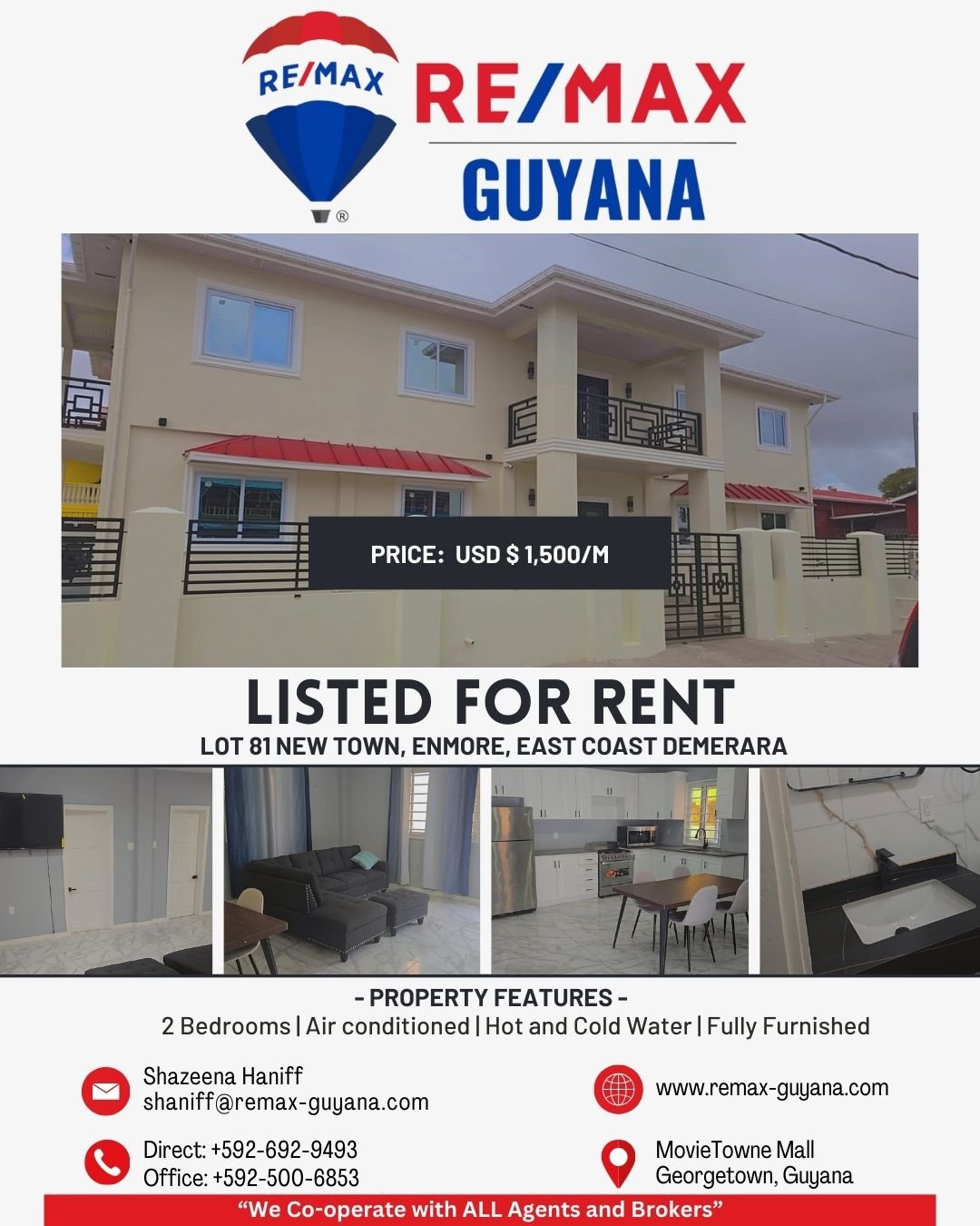 This 2 bedroom, apartment, fully furnished is available for rental in New Town, Enmore. Priced at USD 1,500/month.