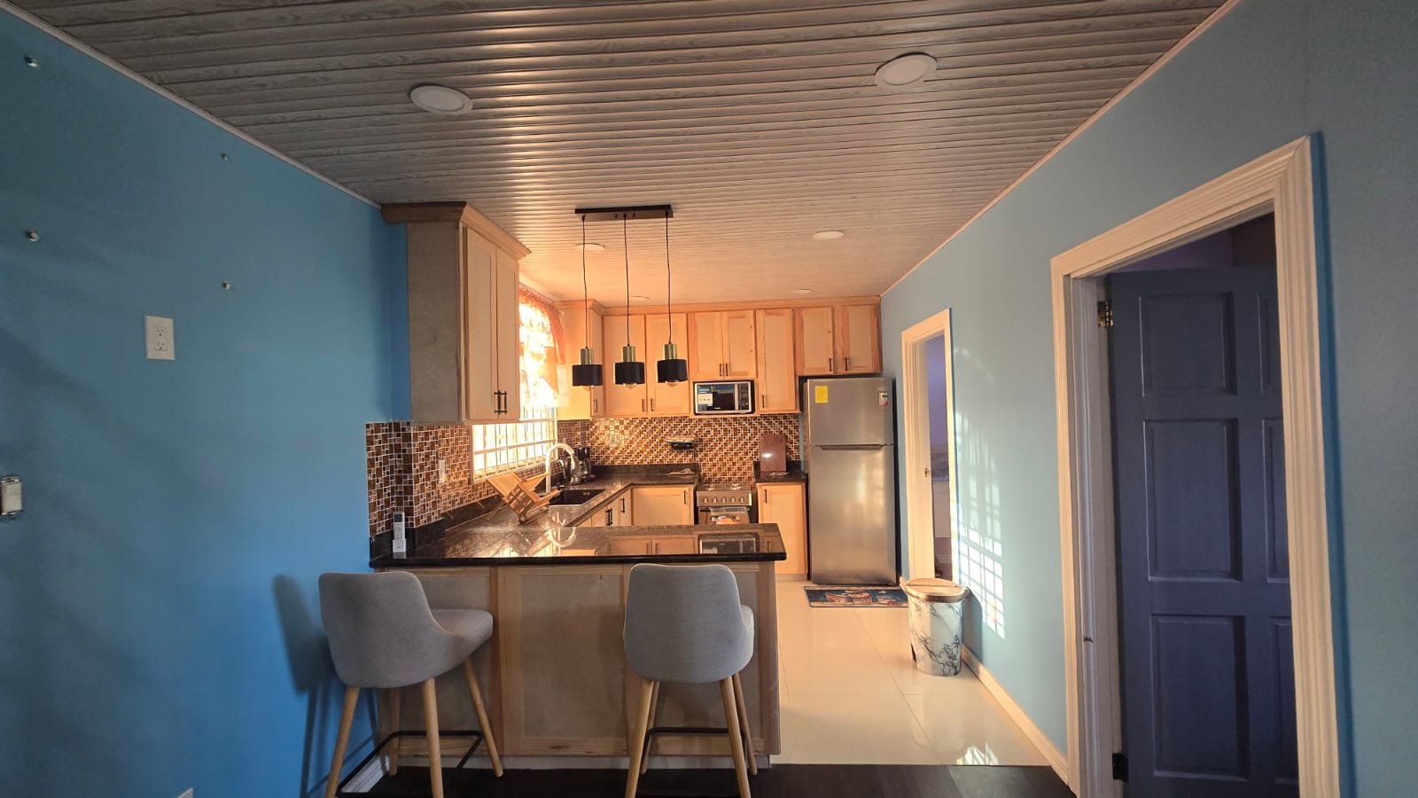 Two bedroom, two bathrooms, furnished apartment with air conditioning, hot and cold showers, laundry, and roof access.