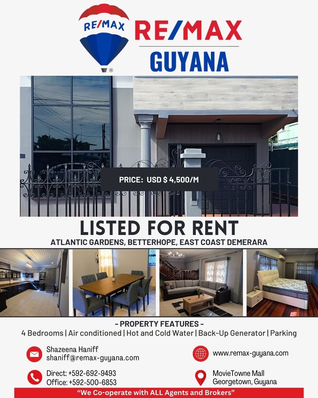 Additional Contact: +592-692-9493, shaniff@remax-guyana.com