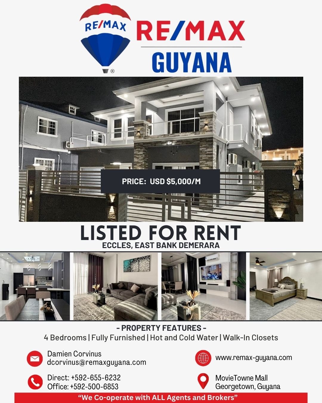 Additional Contact: +592-655-6232, +592-500-6853, dcorvinus@remaxguyana.com