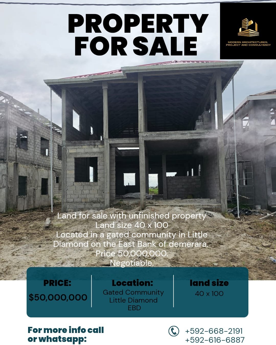 A rare chance to complete your dream home in a prime location. This promising property is situated in the desirable and secure gated community of Little Diamond, East Bank Demerara.