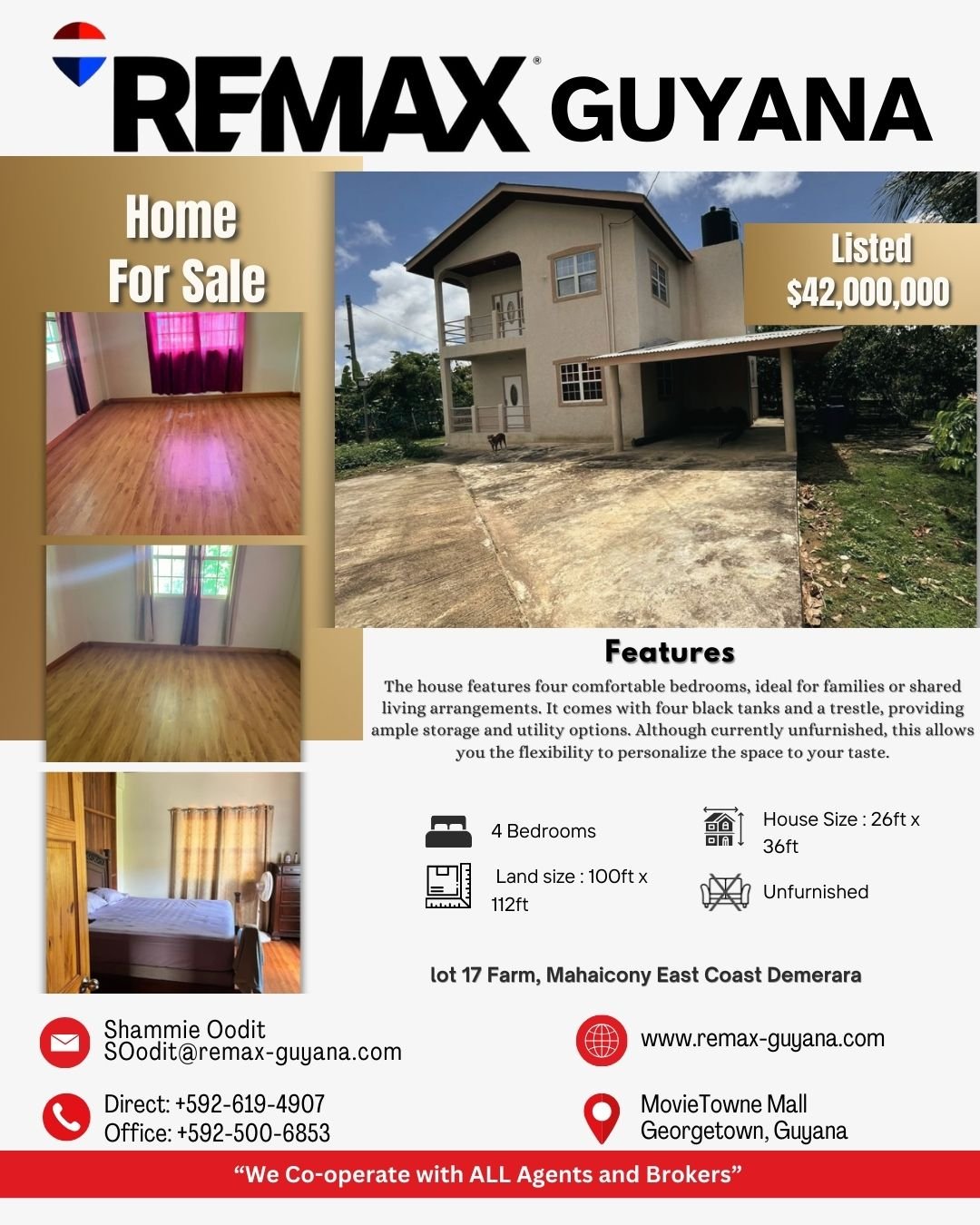 Additional Contact: +592-619-4907, +592-500-6853, SOodit@remax-guyana.com