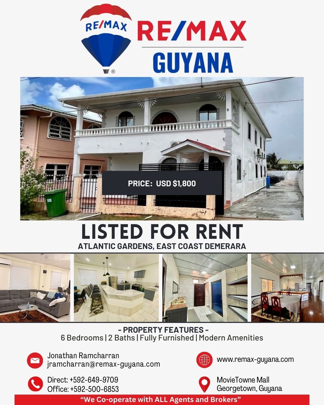 This 6 bedroom, 2 bathroom, house, fully furnished is available for rental in Atlantic Gardens. Priced at USD 1,800/month.