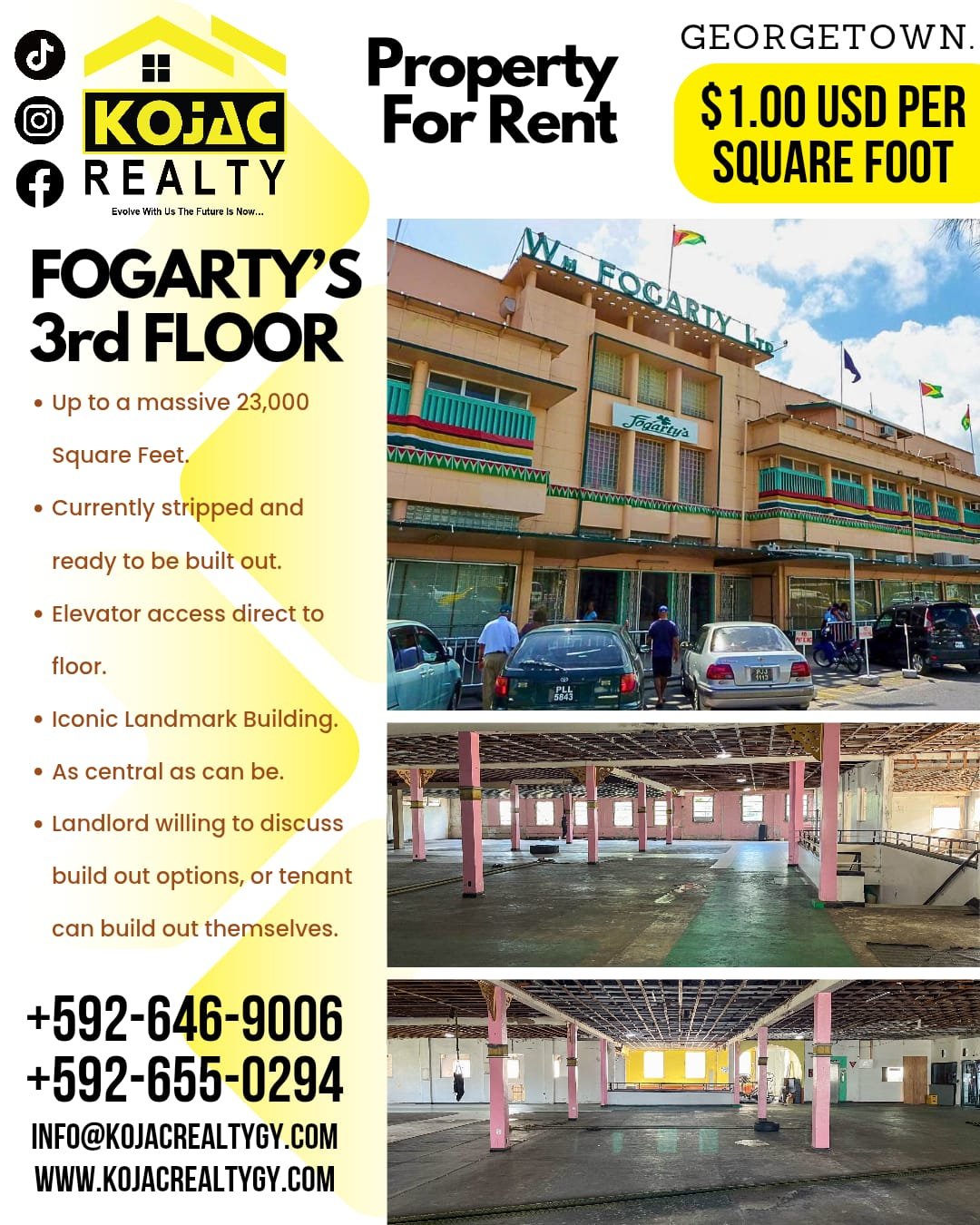 This commercial, unfurnished is available for rental in Fogarty’s 3rd Floor, Georgetown. Priced at USD 1.