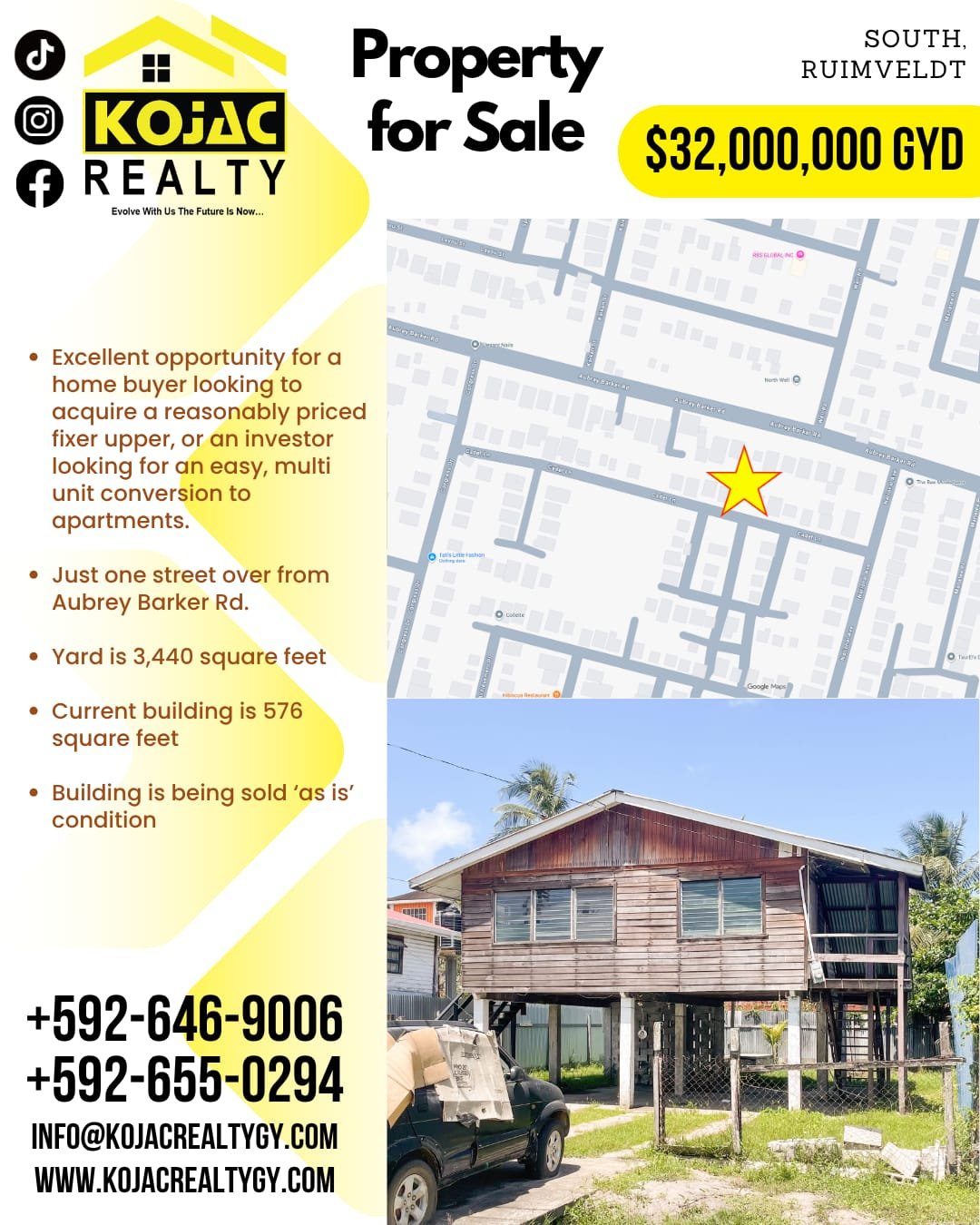 This house is available for sale in South Ruimveldt. Priced at GYD 32,000,000.