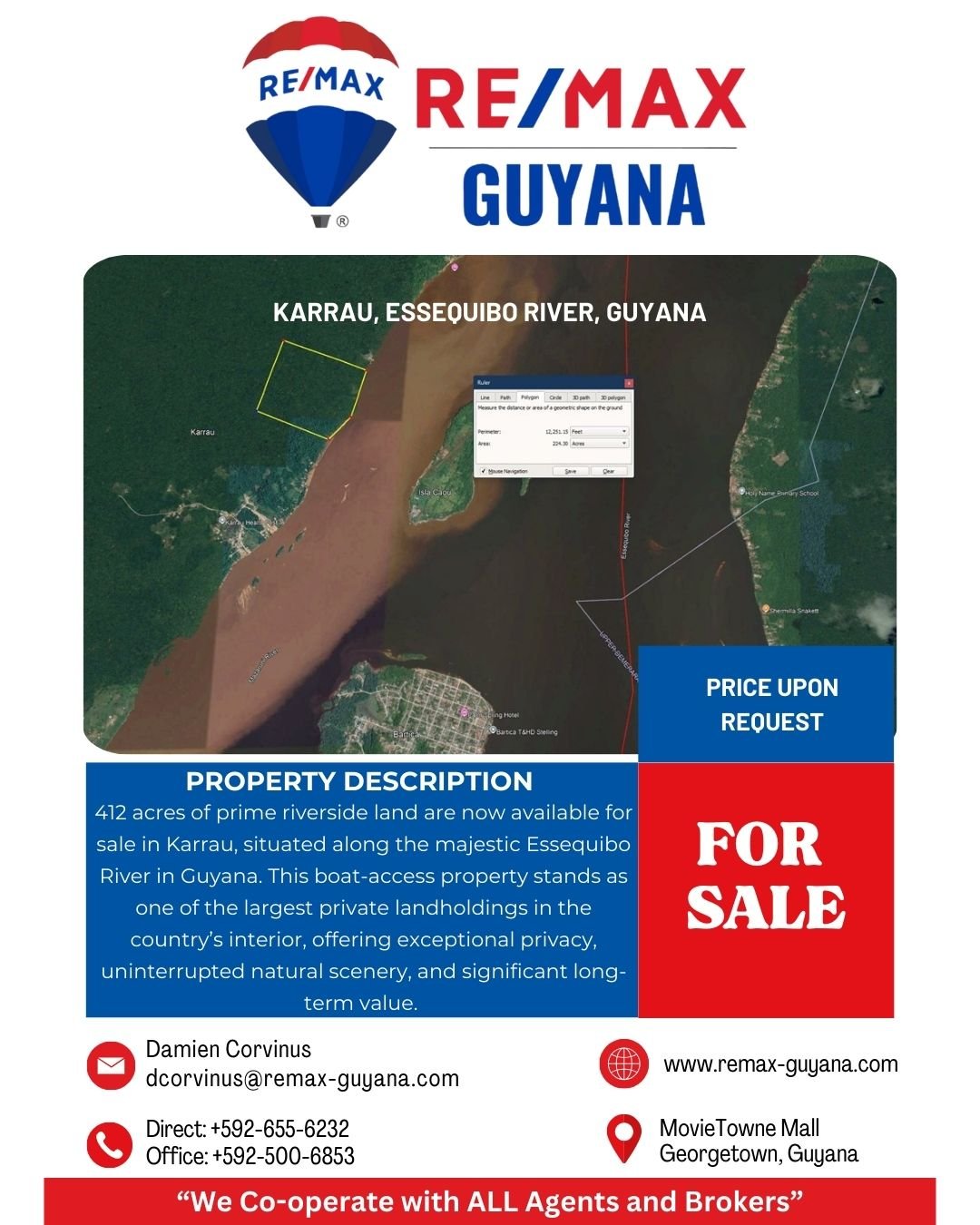 Additional Contact: +592-655-6232, +592-500-6853, dcorvinus@remax-guyana.com