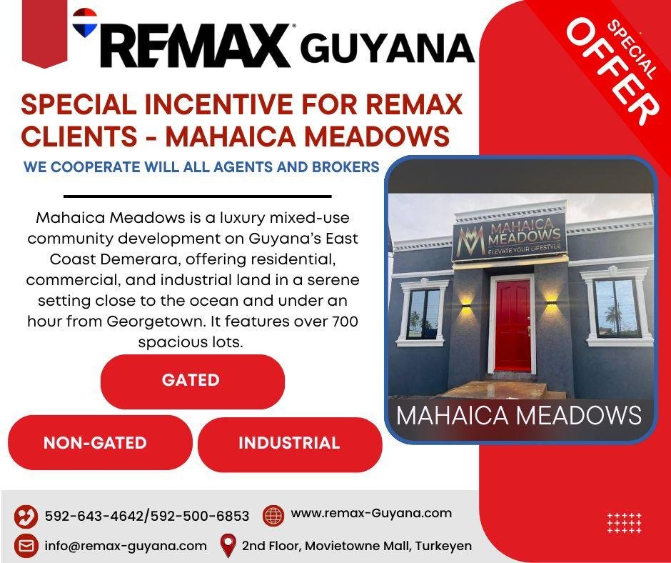 Mahaica Meadows is a luxury mixed-use community development offering residential, commercial, and industrial land.