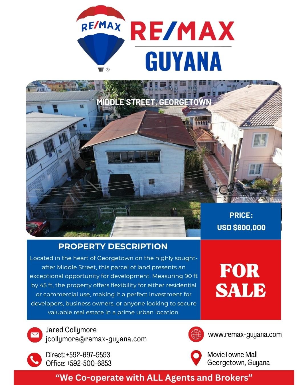 Additional Contact: +592-697-9593, +592-500-6853, jcollymore@remax-guiana.com