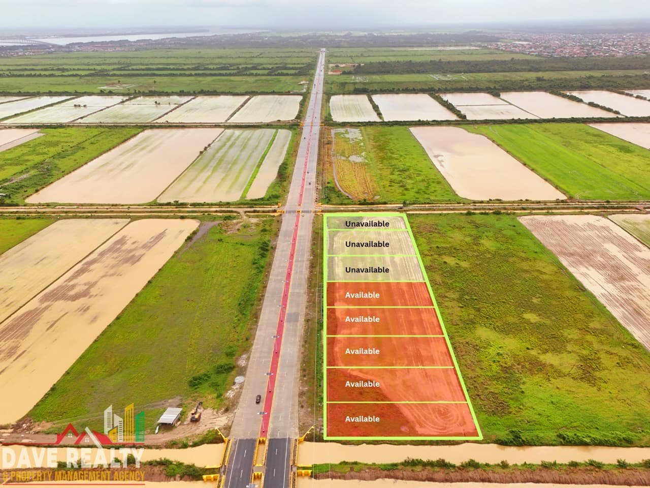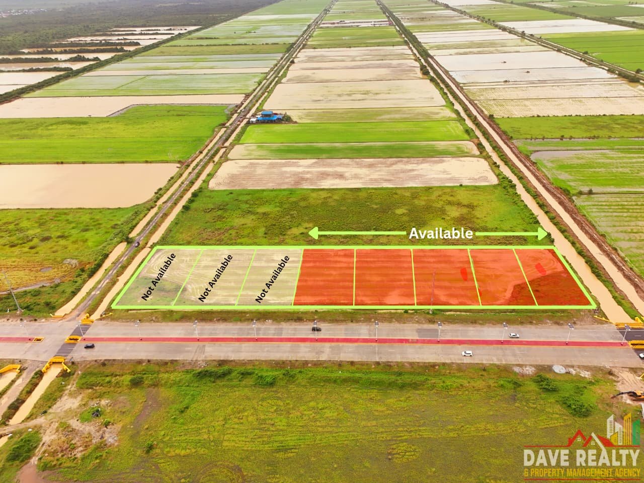 Individualized plots for sale with direct highway access, surveyed land, and a centrally located, high-visibility area.